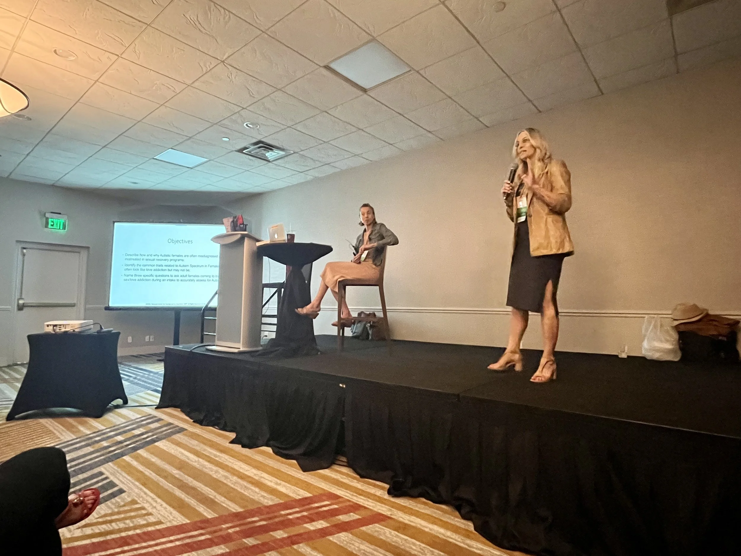 I co-presented with my Autistic colleague Aly Dearborn, LMFT at the April 2023 International Institute of Trauma & Addiction Professionals Annual Symposium on “Loved Addicted or Autistic & Seeking Safety? Accurately Screening, Assessing, and Treating Autistic Females Presenting with Symptoms of Trauma, Sex, and Love Addiction to Inpatient and Outpatient Settings.” Our presentation addressed the importance of screening for Autism in adult women who often present in treatment with chronic mental health challenges and intimacy/relationship difficulties.